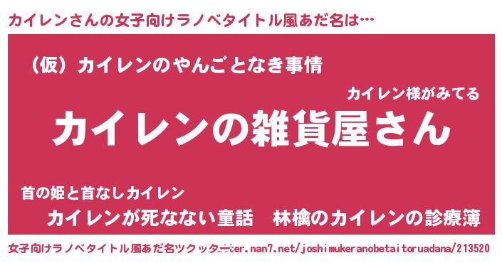 | ファンタジー風あだ名 | 『エターナルカイレンー』『カイフェル』 |