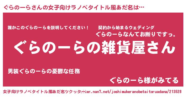 | 男性向けラノベタイトル風あだ名 | 『やはりぐらのーらの青春ラブコメはまちがっている 』 |