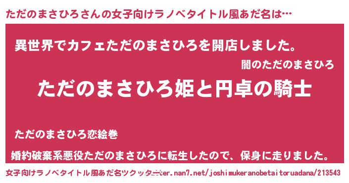 | 男性向けラノベタイトル風あだ名 | 『ただのまさひろの憂鬱』 |