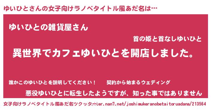 | 肩書あだ名 | 『ゆいひと先生』『ゆいひと総理大臣』 |