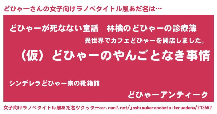 | 胡散臭い通販商品みたいなあだ名 | 『必ず成功するブレスレット…その名も「どひゃー」』 |