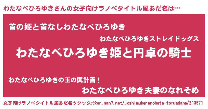 | 男性向けラノベタイトル風あだ名 | 『わたなべひろゆきの憂鬱』 |