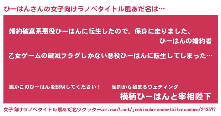 | 男性向けラノベタイトル風あだ名 | 『この素晴らしい世界にひーはんを!』 |