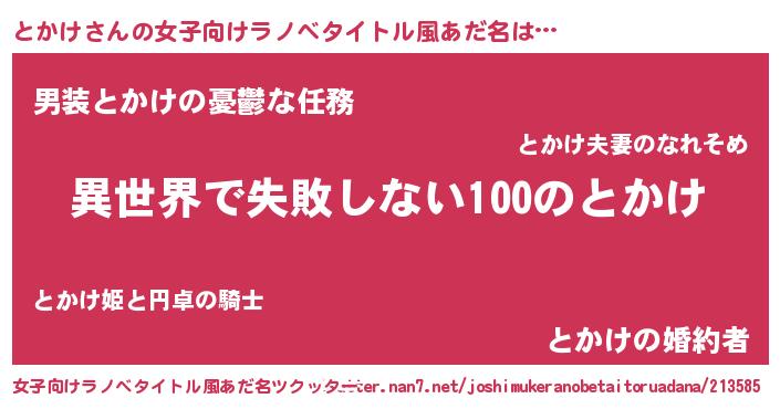 | 男性向けラノベタイトル風あだ名 | 『とかけという概念が存在しない退屈な世界 』 |