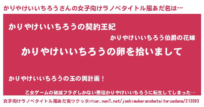 | 可愛いあだ名 | 『かっりぃー』『かりやけいいちろうママ』 |