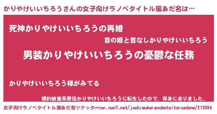 | ヒーロー風カッコイイあだ名 | 『慈愛の使者かりやけいいちろう』 |