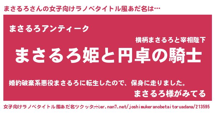 | 男性向けラノベタイトル風あだ名 | 『マサルロアートオンライン』 |