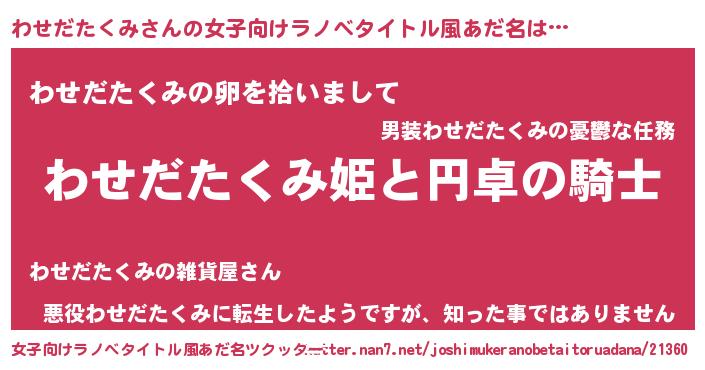 | 胡散臭い通販商品みたいなあだ名 | 『モテモテ間違いなしブレスレット…その名も「わせだたくみ」』 |