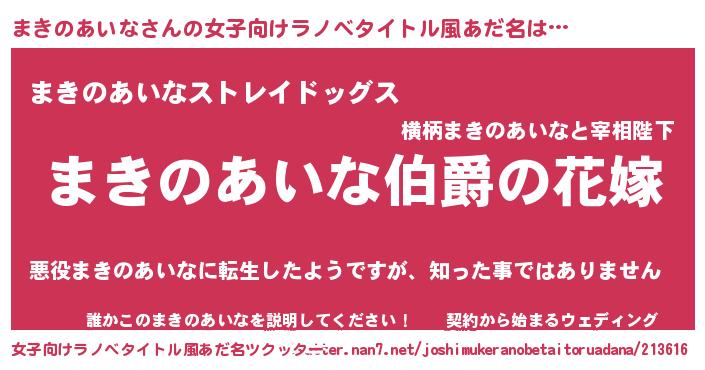 | 胡散臭い通販商品みたいなあだ名 | 『世界が平和になる高級そうな絵画…その名も「まきのあいな」』 |