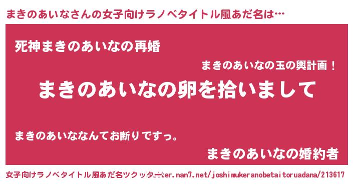 | 男性向けラノベタイトル風あだ名 | 『ダンジョンにまきのあいなを求めるのは間違っているだろうか』 |