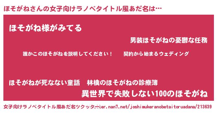 | 意味不明あだ名 | 『ペロリンほそがね』『永久保存ほそがね』 |