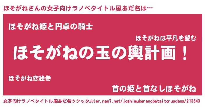 | 胡散臭い通販商品みたいなあだ名 | 『億万長者になれる霊験あらたかなお札…その名も「ほそがね」』 |