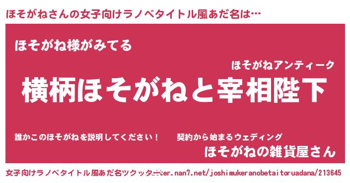 | 胡散臭い通販商品みたいなあだ名 | 『伝統あるサプリメント…その名も「ほそがね」』 |