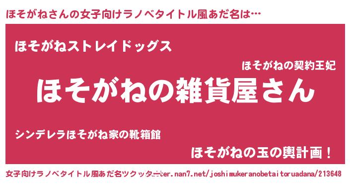 | 胡散臭い通販商品みたいなあだ名 | 『幸せが訪れる高級そうな絵画…その名も「ほそがね」』 |