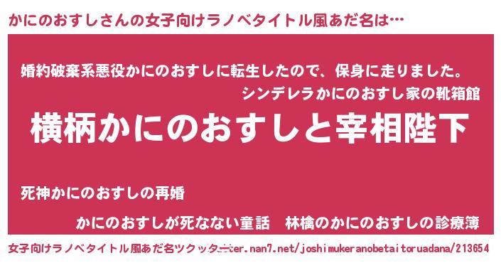 | 胡散臭い通販商品みたいなあだ名 | 『あなたにだけ特別に提供する100年もののヴィンテージワイン…その名も「かにのおすし」』 |