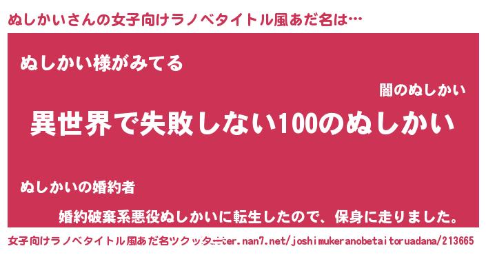| 意味不明あだ名 | 『永久保存ぬしかい』『自称ぬしかい』 |