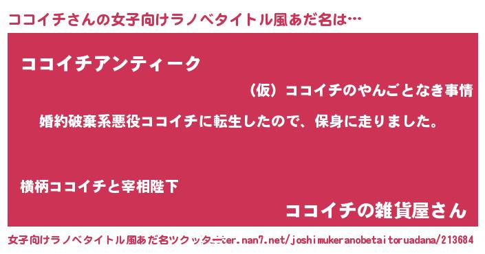 | ヘコむあだ名 | 『豆乳』『ココにゅー』『ココっ子』 |