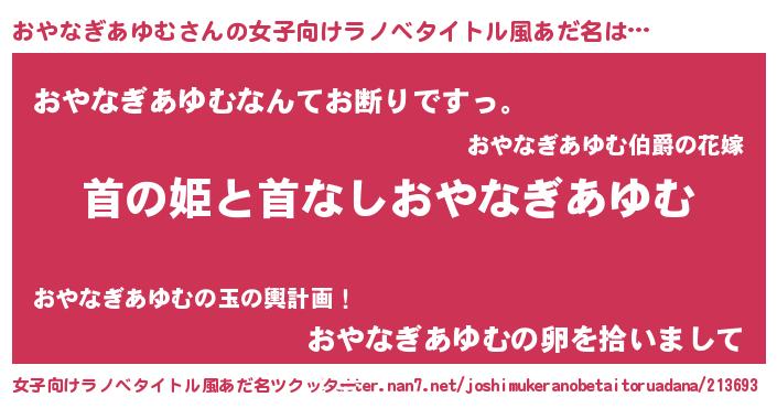 | 男性向けラノベタイトル風あだ名 | 『はたらくおやなぎあゆむさま!』 |
