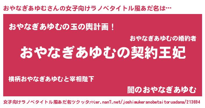 | 可愛いあだ名 | 『おやなぎあゆむママ』『おやぷりん』 |