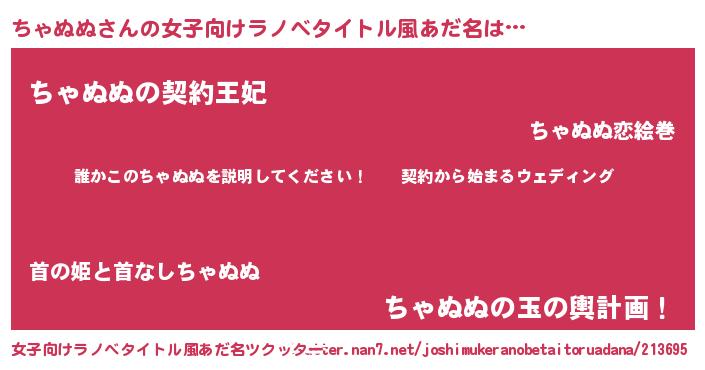| 男性向けラノベタイトル風あだ名 | 『チャヌヌアートオンライン』 |