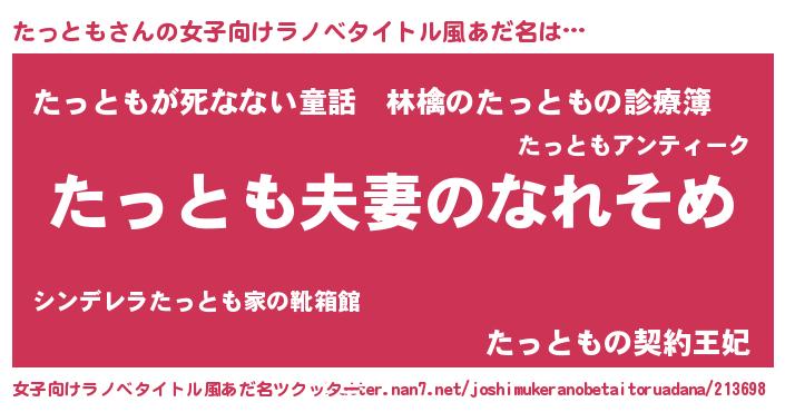 | 胡散臭い通販商品みたいなあだ名 | 『100人中100人が認めたイリジウム磁石…その名も「たっとも」』 |