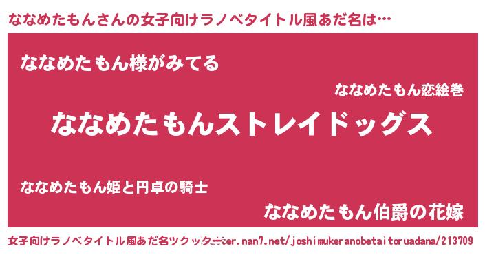 | 意味不明あだ名 | 『自称ななめたもん』 |
