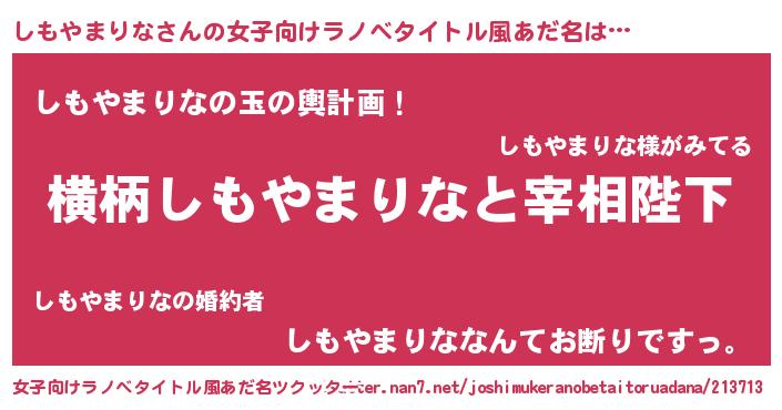 | 男性向けラノベタイトル風あだ名 | 『しもやまりなに滅ぼされるだけの簡単なお仕事です』 |