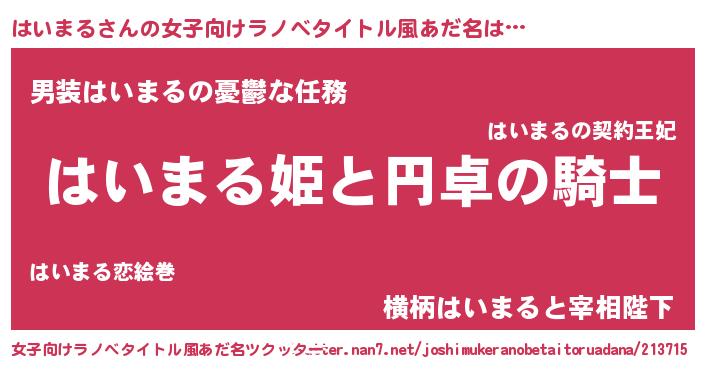 | 男性向けラノベタイトル風あだ名 | 『ハイマルアートオンライン』 |