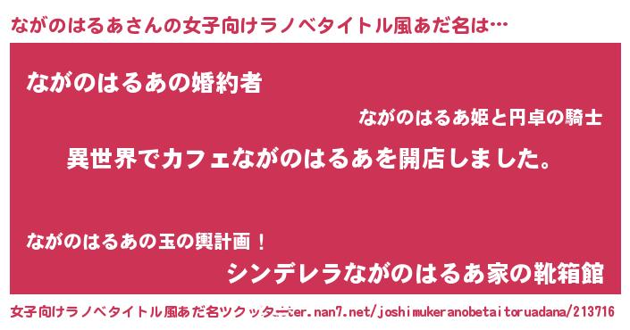 | 肩書あだ名 | 『ながのはるあ副担任』 |