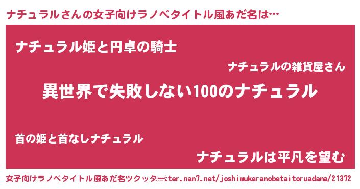 | ヘコむあだ名 | 『ナチュラル(笑)』『ナチふぇ~』 |
