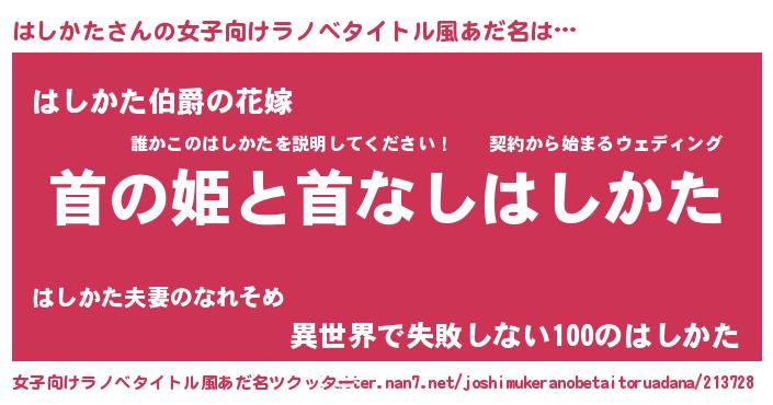 | ヒーロー風カッコイイあだ名 | 『ウルトラはしかたマン』『ネオハシカタ』 |