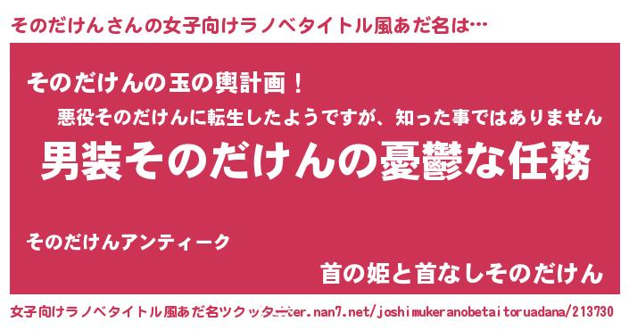 | 男性向けラノベタイトル風あだ名 | 『うちのそのだけんが世界を掌握している!』 |