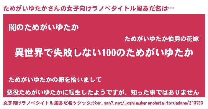 | 男性向けラノベタイトル風あだ名 | 『ためがいゆたかという概念が存在しない退屈な世界 』 |