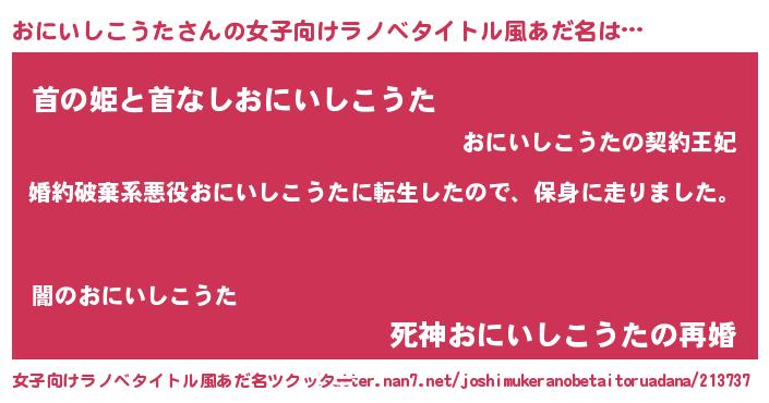 | 料理風あだ名 | 『おにいしこうたごはん』 |