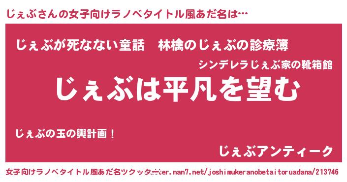 | 男性向けラノベタイトル風あだ名 | 『ダンジョンにじぇぶを求めるのは間違っているだろうか』 |