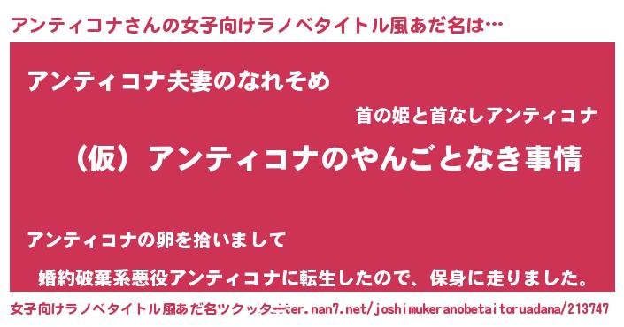 | 男性向けラノベタイトル風あだ名 | 『アンティコナの憂鬱』 |