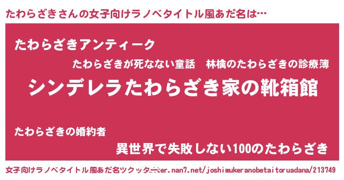 | 男性向けラノベタイトル風あだ名 | 『緋弾のタワラザキ』 |