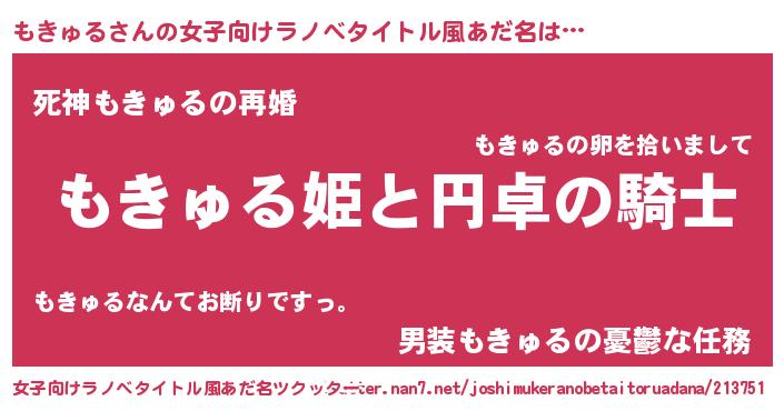| 男性向けラノベタイトル風あだ名 | 『もきゅるの憂鬱』 |
