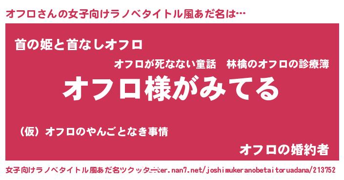 | 男性向けラノベタイトル風あだ名 | 『オフロの嫁は女の子じゃないと思った?』 |
