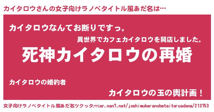 | 男性向けラノベタイトル風あだ名 | 『ノーゲーム・ノーカイタロウ』 |