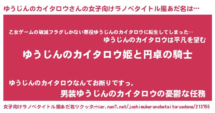 | 男性向けラノベタイトル風あだ名 | 『ゆうじんのカイタロウの憂鬱』 |