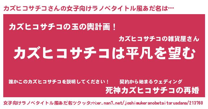 | 男性向けラノベタイトル風あだ名 | 『ダンジョンにカズヒコサチコを求めるのは間違っているだろうか』 |