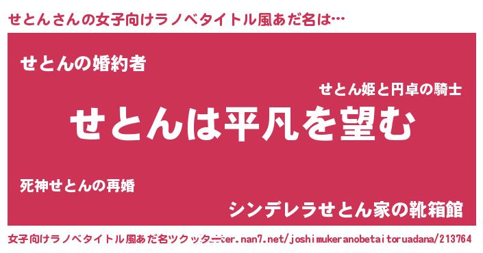 | 胡散臭い通販商品みたいなあだ名 | 『信頼と実績のサプリメント…その名も「せとん」』 |