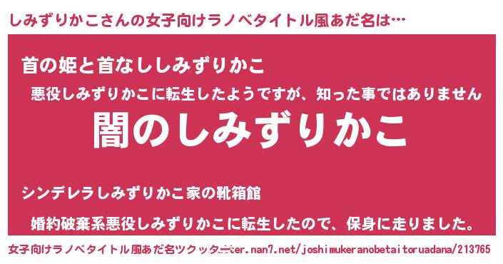 | 意味不明あだ名 | 『自称しみずりかこ』 |