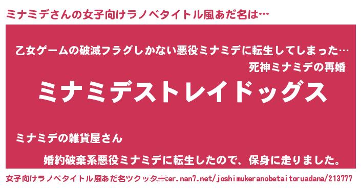 | ヘコむあだ名 | 『酢こんぶ』『ミナもー』『ミナを』 |