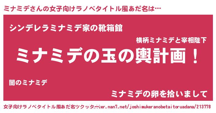 | ヒーロー風カッコイイあだ名 | 『幻影騎士ミナ』『ウルトラ戦士ミナミデ』 |