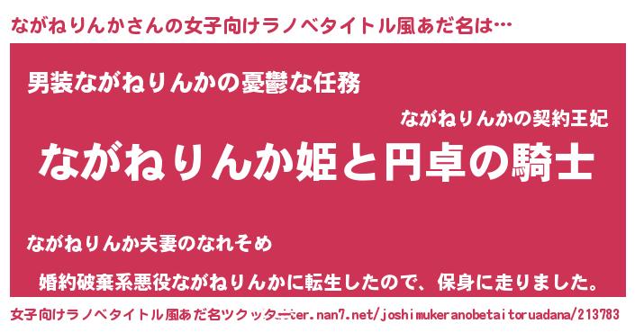 | 男性向けラノベタイトル風あだ名 | 『ながねりんかの憂鬱』 |