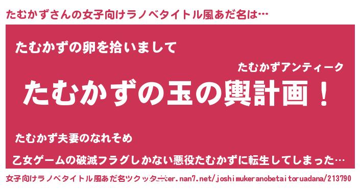 | ポケモン風あだ名 | 『タムキング』『ヒタムカズ』 |