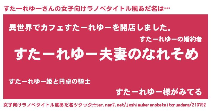 | ヘコむあだ名 | 『すたーれゆー(震え声)』『すたっ子』 |