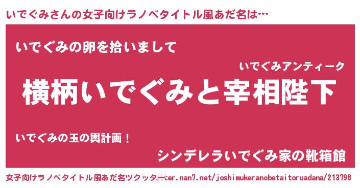 | 男性向けラノベタイトル風あだ名 | 『いでぐみに滅ぼされるだけの簡単なお仕事です』 |